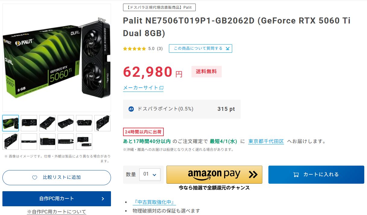 RTX5060は性能の向上幅で見た場合、RTX4060Tiの性能に僅かに劣るという程度なのでRTX40シリーズ搭載モデルを保有しているユーザーからしたら正直微妙なグラボです。