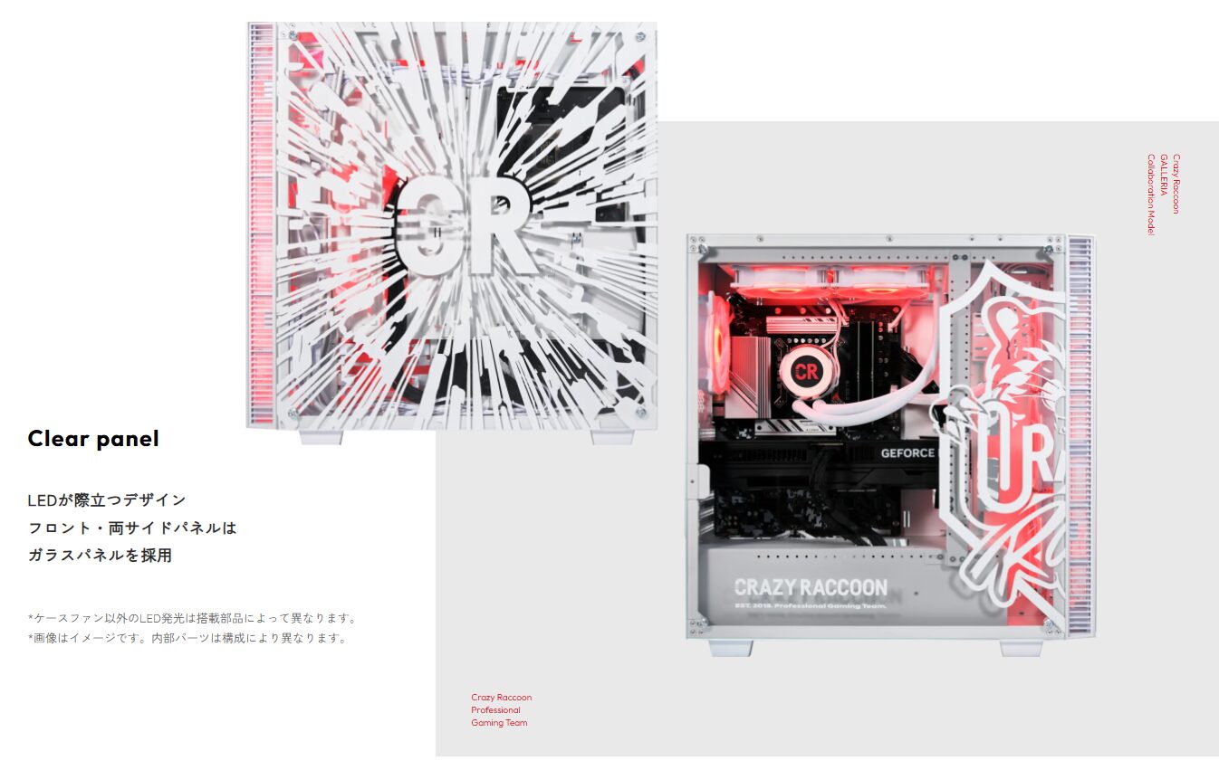 GALLERIAでは以前から大人気ゲーミングチームである「CrazyRaccoon」のコラボゲーミングPCを販売していましたが、2025年4月25日からリニューアルバージョンであるホワイトカラーコラボモデルの販売も開始しました!
