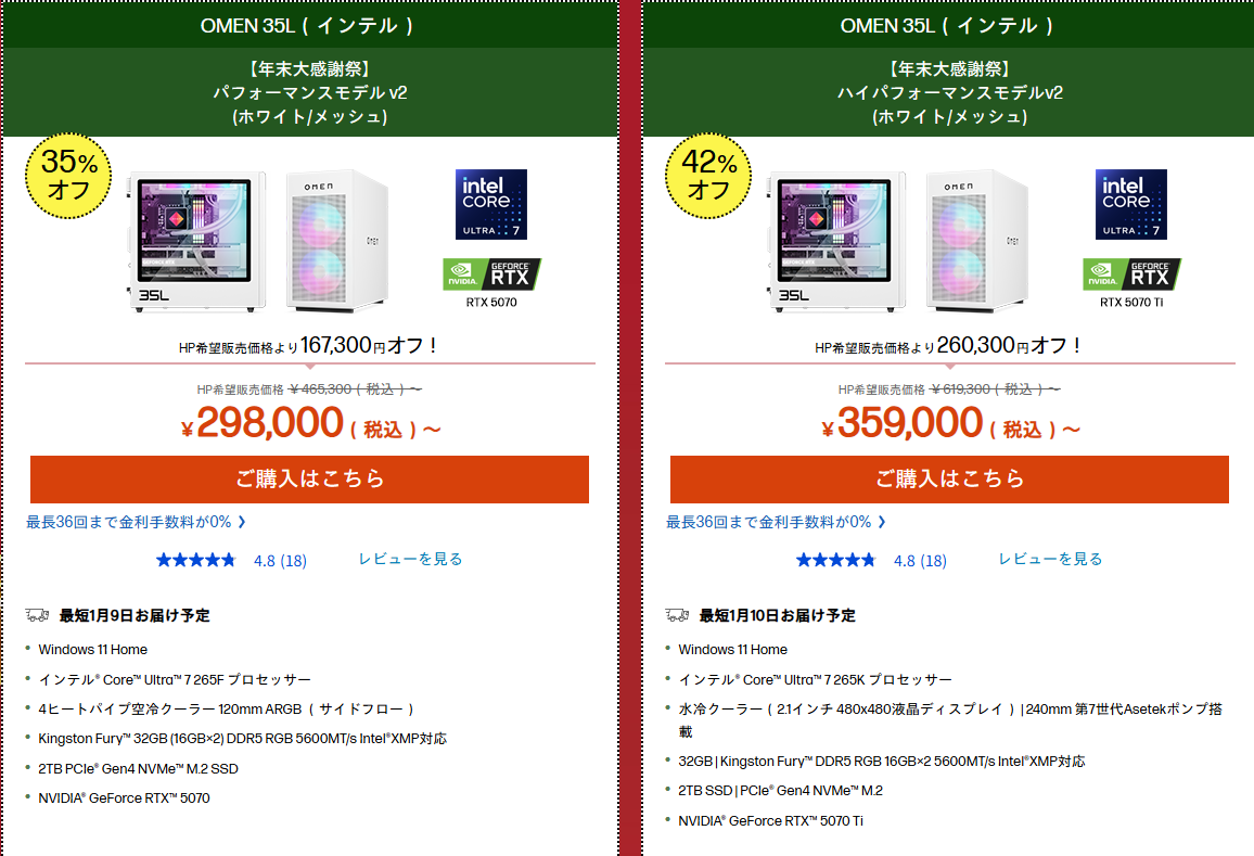 12月24日10時59分まで開催しており、ゲーミングPCが最大で8万円お得になっています。