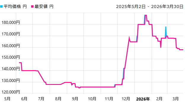 2025年5月~2026年3月のPalit製RTX5080価格推移