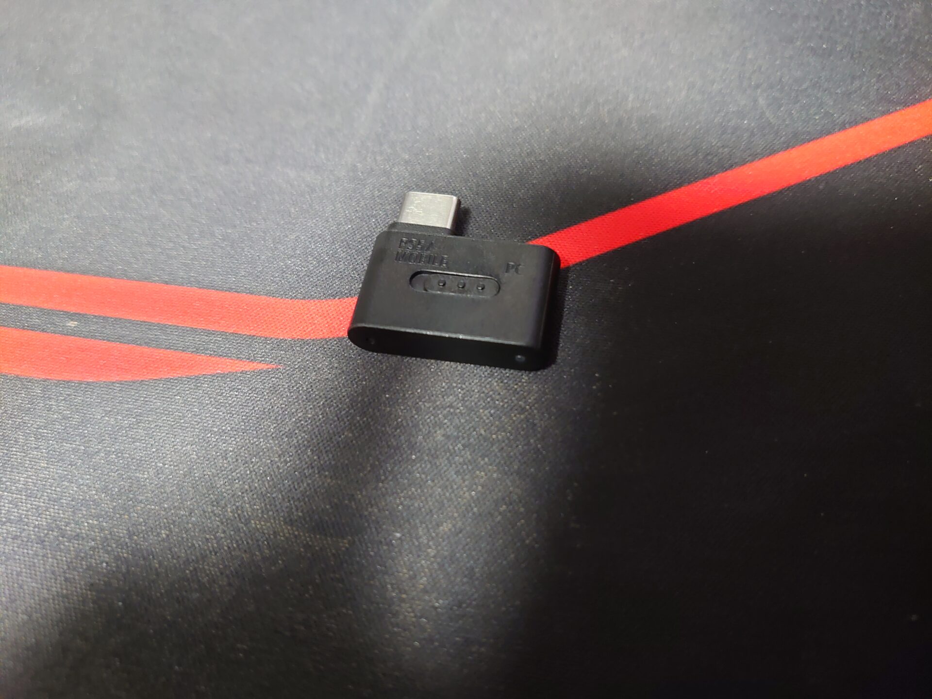 2.4GHz接続用ドングルは両モデルともUSB Type-Cですが、Arctis GameBudsには最初から「USB Type-CからType-Aに変換するアダプタ」が付属しています。