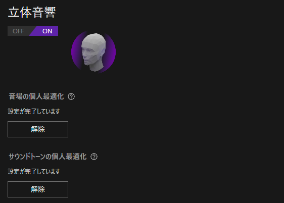 PC専用ソフト「INZONE HUB」にも画像のように、音場の個人最適化やサウンドトーンの個人最適化といった機能は備わっていますが、「SONAR」ほど定位感が分かりやすくなるわけではありません。