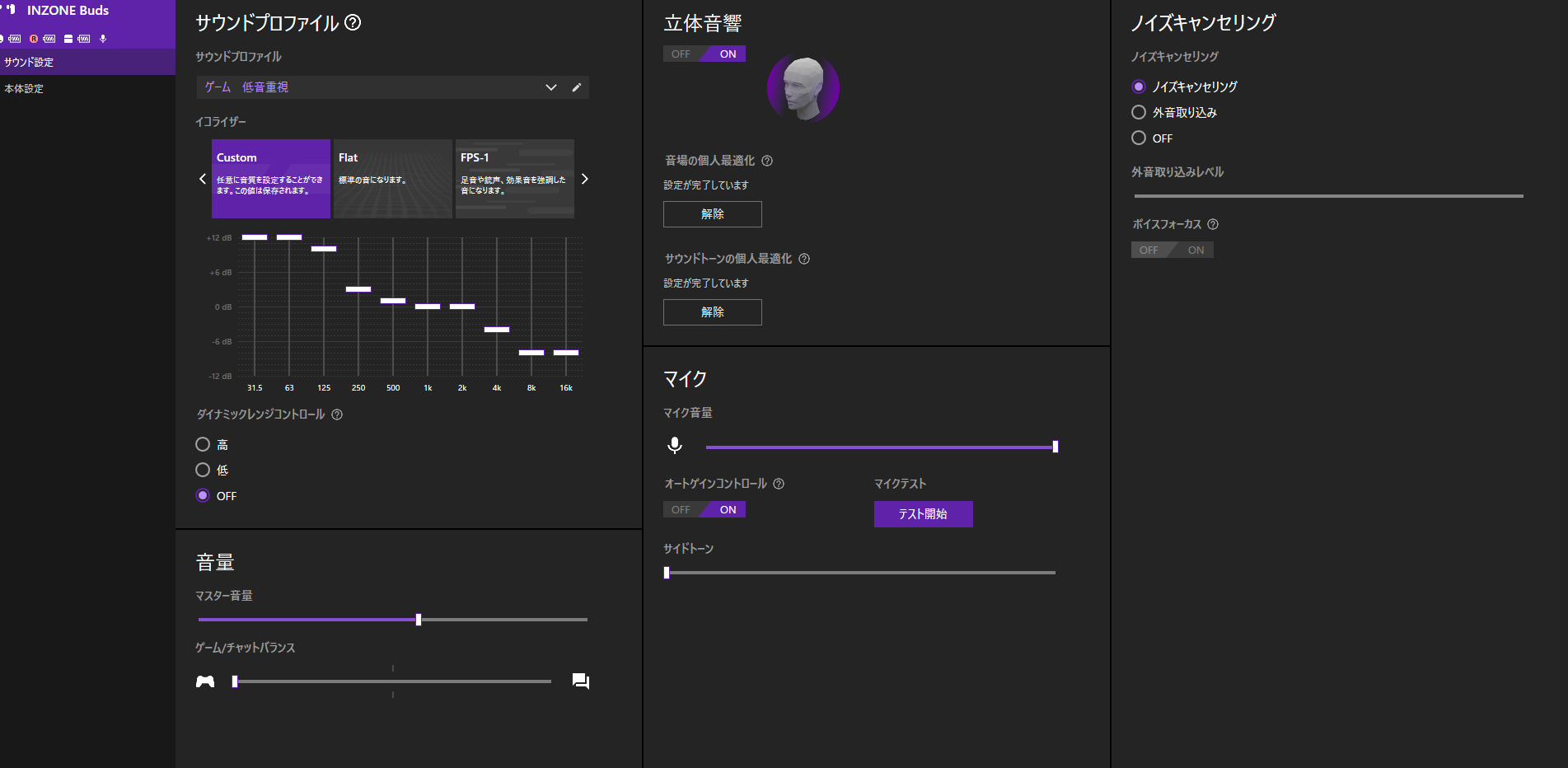 これは起動しているゲームに合わせてオーディオを自動最適化してくれる便利な機能で、INZONE Budsと上手く差別化が出来ている機能です。