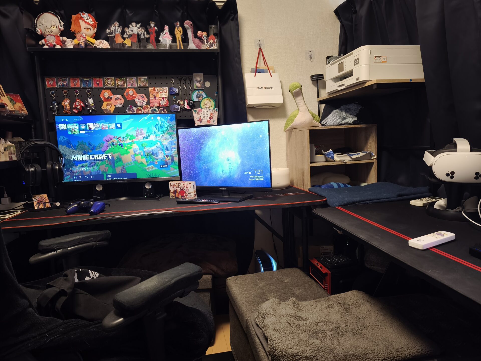 6.5畳ほどの部屋一つをまるまるゲーミングルームにして遊んでいます。